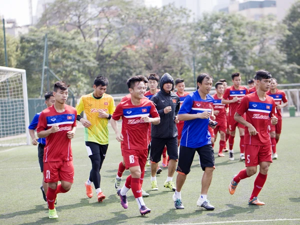 Đội tuyển Việt Nam tập nhẹ trước khi lên đường sang Tajikistan chuẩn bị gặp Afghanistan trong khuôn khổ vòng lại Asian Cup. Ảnh: VFF