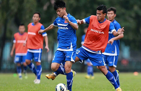 Các trung vệ và hậu vệ có thể hoán chuyển vị trí cho nhau. Ảnh: QUANG THẮNG