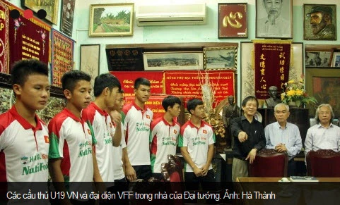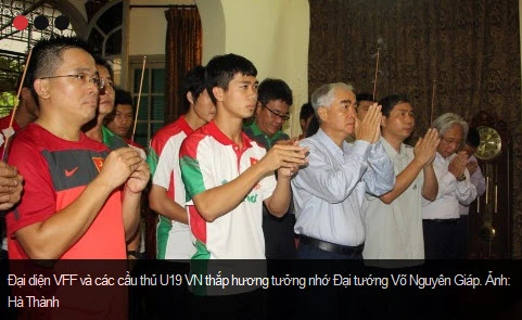Đúng 9g sáng, các cầu thủ U19 xếp hàng đi từ đường Hoàng Diệu vào thắp hương tại phòng thờ Đại tướng. Sau khi thắp hương tưởng nhớ Đại tướng, các cầu thủ U19 được ông Võ Hồng Nam - con trai Đại tướng Võ Nguyên Giáp đưa đi thăm quan vườn cây, phòng tiếp khách quốc tế và các khu vực khác trong khuôn viên căn nhà 30 Hoàng Diệu. Mỗi cây trong vườn, mỗi kỷ vật trong ngôi nhà đều gắn với một kỷ niệm của Đại tướng Võ Nguyên Giáp.