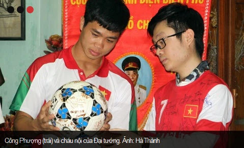 Đội trưởng Nguyễn Công Phượng thay mặt toàn đội cảm ơn gia đình Đại tướng đã đón tiếp và xin hứa U19 VN sẽ cống hiến hết sức mình vì màu cờ sắc áo tổ quốc. Công Phượng cũng thay mặt đội tuyển tặng gia đình Đại tướng quả bóng và chiếc áo đấu có chữ ký đầy đủ của tập thể đội U19 VN.