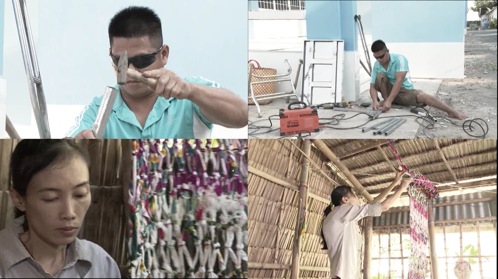 Hằng ngày, chị Rạng mua vải vụn về đan thảm lót, đan lưới rào gà vịt để kiếm tiền trang trải cuộc sống. Biết anh Giàu có tay nghề gia công, bà con trong vùng liên tục đặt anh làm bàn ghế hoặc các vật dụng làm nông, nhờ vậy mà hai vợ chồng có thể gói ghém sống qua ngày.