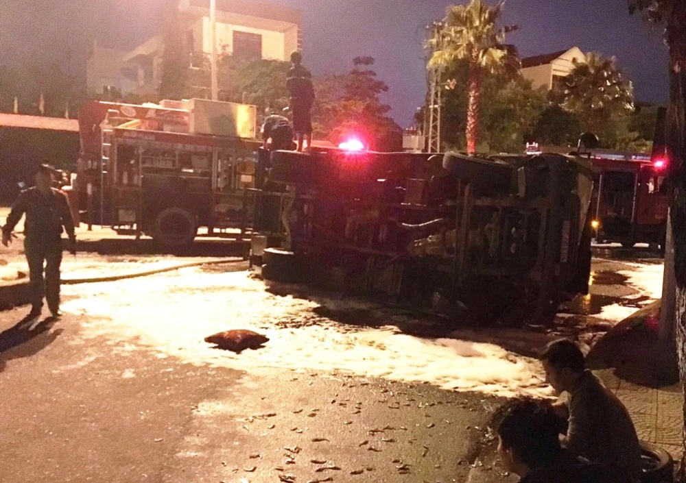 Khi đến giao lộ Yết Kiêu – Lê Đức Thọ (phường Thọ Quang, quận Sơn Trà, Đà Nẵng) thì bất ngờ lật nhào.