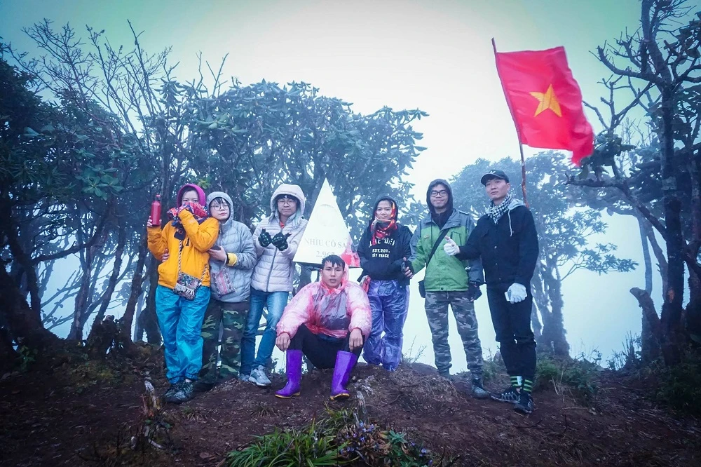 Trời tảng sáng, có thể nhìn lờ mờ cảnh vật nên tôi cất đèn đi, lúc này sức lực đã gần cạn kiệt, thở dốc liên tục, mũi cay xè vì hít phải khí lạnh, sương rơi nặng hạt như mưa, khu rừng đỗ quyên âm u trong làn sương sáng sớm. Cuối cùng, sau bao lần tự nhủ gắng lên thì tôi cũng tới được chóp, chúng tôi phi thẳng một mạch vào để lặng lẽ ôm chóp, tiếng gió thổi qua lớp áo mỏng, tiếng phần phật của chiếc quần mưa... tất cả không còn quan trọng nữa. Tôi cứ đứng cạnh cái chóp mà hưởng thụ thành quả sau bao nhiêu mệt mỏi, đau nhức. Với tôi, hành trình đến với Nhìu Cổ San như vậy là đủ!