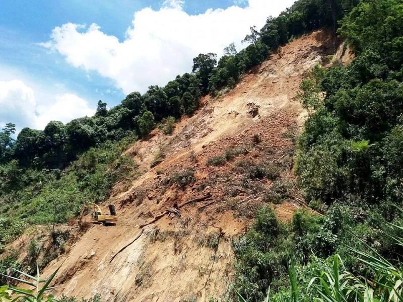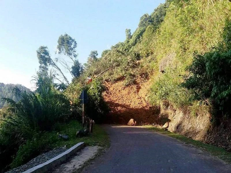Núi bị sạt đổ xuống đường.