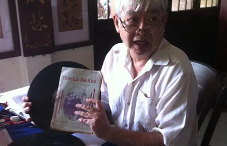 Ông Trương Ngọc Tường với đĩa và sách tuồng hát xưa. Ảnh: NGUYÊN VẸN