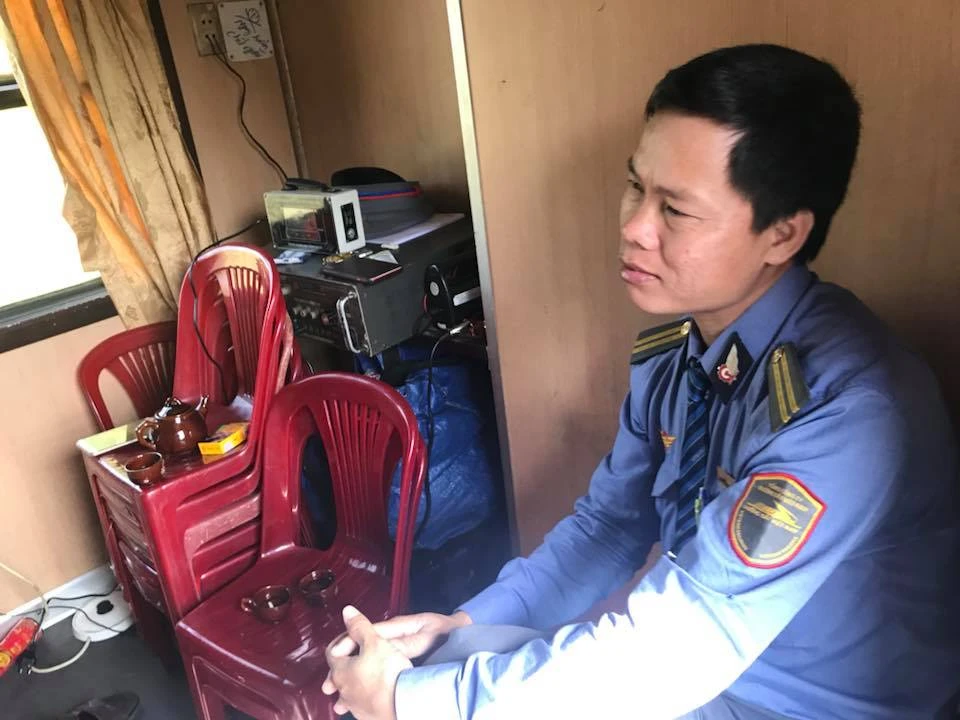 Trưởng tàu Cao Minh Đức ngồi lơ đãng nhìn xa xăm, người lắc lư theo nhịp bánh sắt, nghe không sót câu nào.