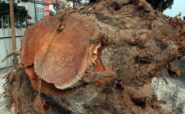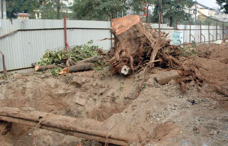 Theo quy trình, những cây được đốn hạ sẽ phải đào cả gốc, đảm bảo về sau không bị lún sụt