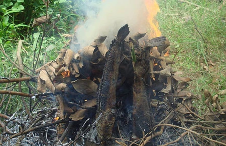 Bày cá ra lá chuối xiêm, hoặc lá sen, dùng rơm cạo vẩy khét bên ngoài. Phải làm nhanh và thật đều tay, không được giập thì cá mới ngon. Nếu để cá nguội, vẩy khét sẽ mất độ giòn và dính chặt vào da cá, sẽ cạo không hết khét hoặc da cá bị trầy xước, khó coi. Sau đó, dùng tay mở bung lưng cá ra theo dọc chiều xương sống.
