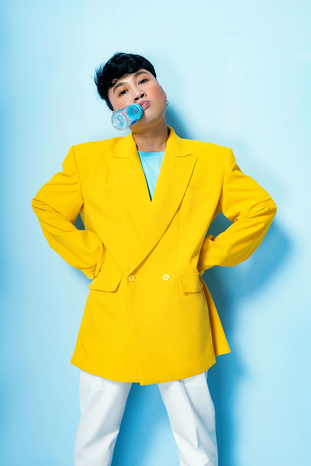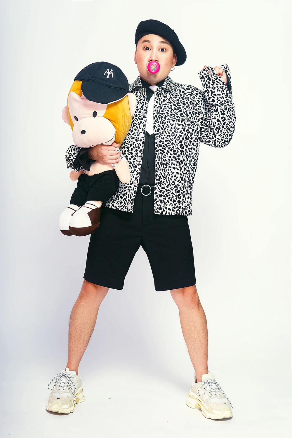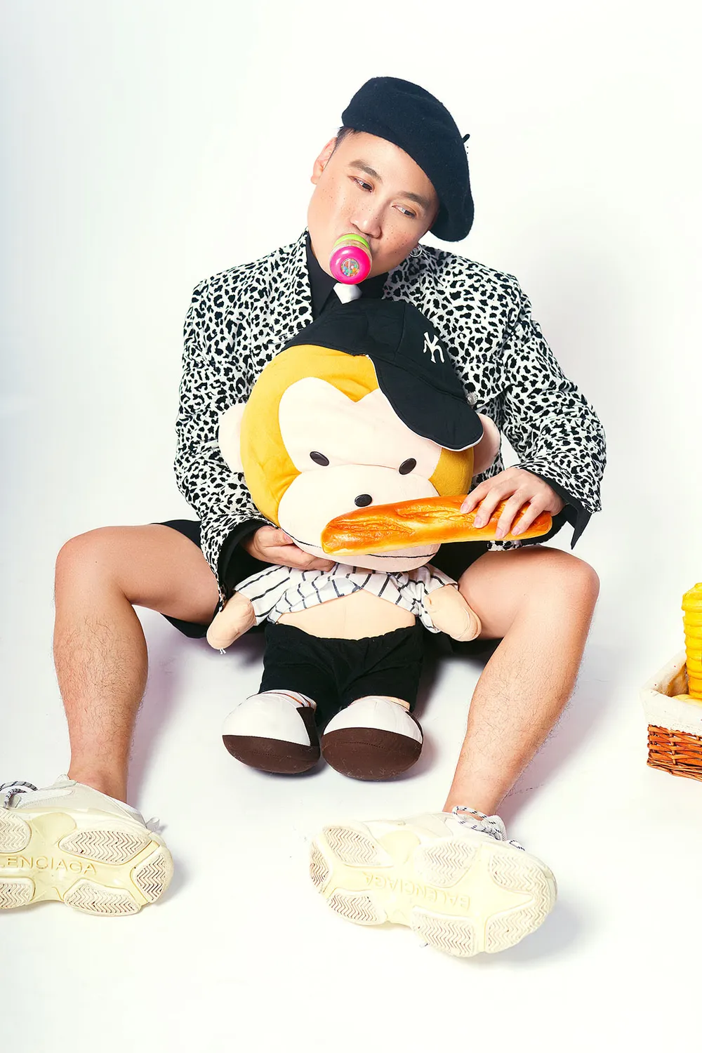 Don Nguyễn đã diện lên người rất nhiều bộ trang phục đa sắc màu, rực rỡ, hầu hết đều cực kỳ bắt mắt và phù hợp với tinh thần giải trí tràn ngập trong phong cách của Don Nguyễn từ trước đến nay. Và cùng “phụ họa” một cách cực kỳ hiệu quả với Don Nguyễn không gì khác chính là những phụ kiện “em bé” rất đáng yêu như bình sữa, núm cao su, những mô hình, đồ chơi trẻ em, gấu bông…