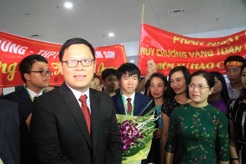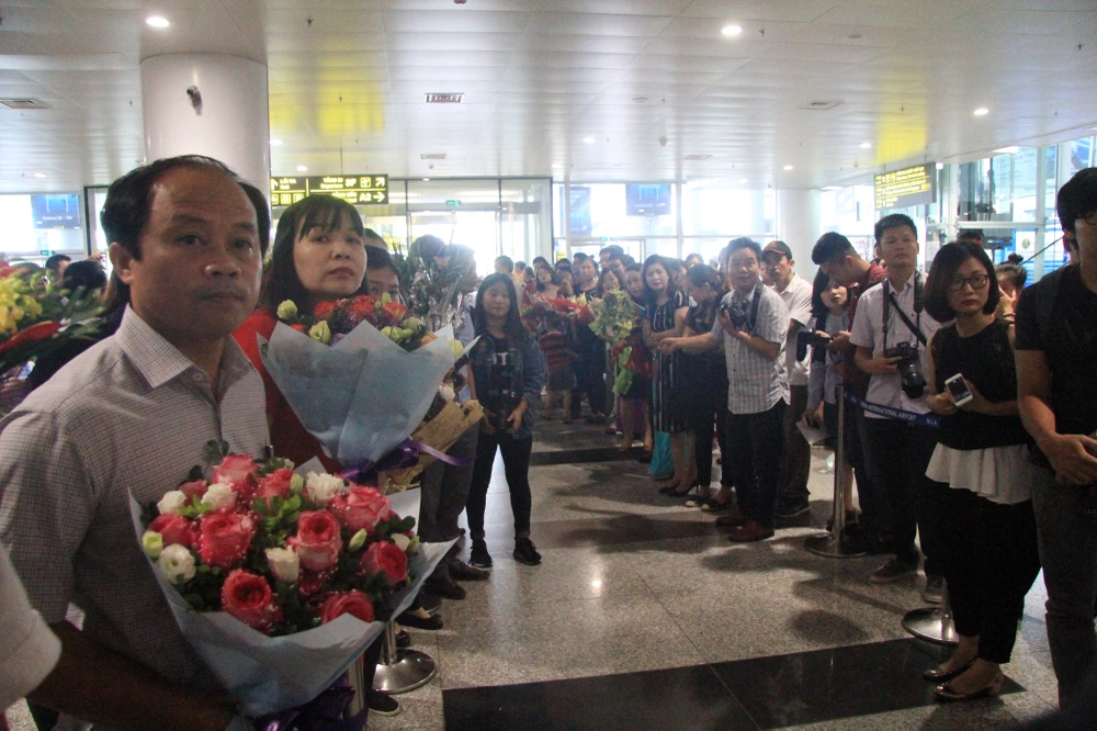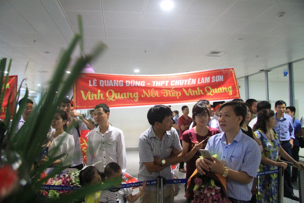 Ngay từ sáng sớm, rất đông thầy cô, bạn bè, lãnh đạo các sở GD&ĐT đã có mặt tại sân bay quốc tế Nội Bài để chờ đón đoàn dự thi Olympic Toán học quốc tế.