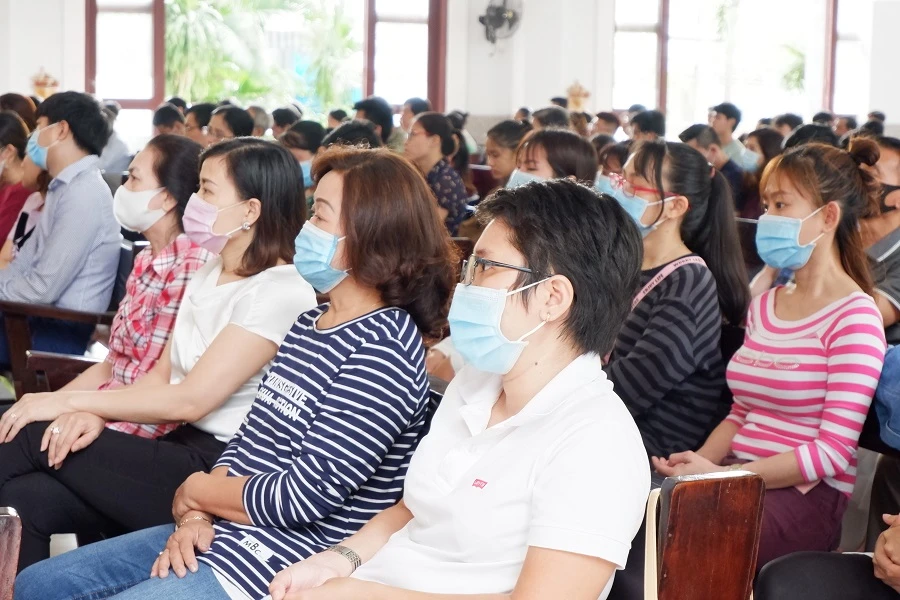 “Hằng tuần, nhà thờ đều phun thuốc sát khuẩn, trang bị khẩu trang, nước rửa tay. Chúng tôi cũng nhắn nhở giáo dân tự giác thực hiện yêu cầu 5K (Khẩu trang - Khử khuẩn - Khoảng cách - Không tập trung - Khai báo y tế)”,- Linh mục Trần Thanh Cao nói.