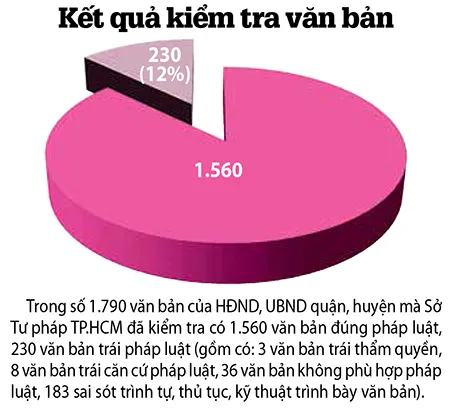 Trong nhiều năm qua, TP.HCM đã tích cực tổ chức công tác kiểm tra nhằm thu gọn số lượng và đảm bảo tính pháp lý của các văn bản đã ban hành. Từ chỗ có hơn 4.000 văn bản, nay cấp TP chỉ còn khoảng 800 văn bản, cấp quận, huyện chỉ còn 30 văn bản.