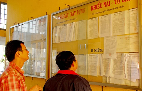 Người dân đang tìm hiểu các văn bản tại UBND xã Tân Hiệp, huyện Hóc Môn, TP.HCM. Ảnh: HTD