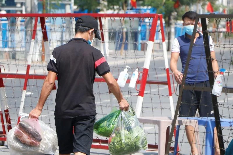 Người dân nhận gạo, thực phẩm từ người thân và chính quyền địa phương. Ảnh: LÊ ÁNH