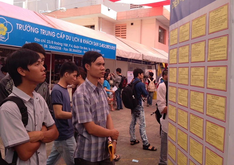 Thanh niên, người lao động các tỉnh, thành tìm kiếm việc tại một chương trình "Tiếp sức người lao động" . Ảnh: P.ĐIỀN