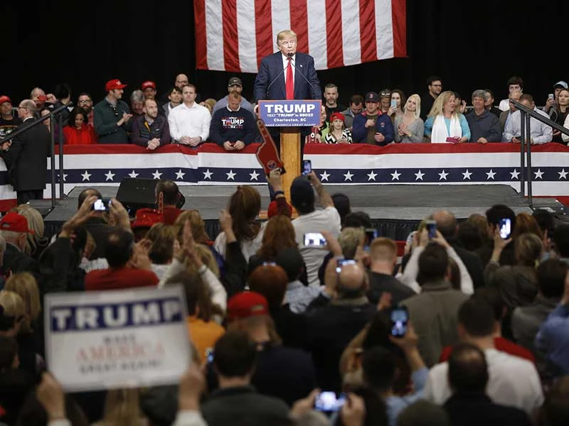 Ông Trump trong một bài phát biểu chỉ trích vấn đề nhập cư của Mexico hồi tháng 2-2016. Tuy nhiên, cùng ngày hôm đó, luật sư đại diện cho ông đã nộp đơn xin cấp phép một thương hiệu tại Mexico. Ảnh: AP