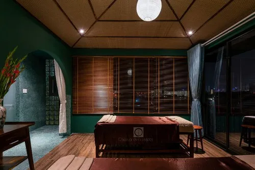 Không gian được cắt lớp và đóng mở liên tục theo từng bước chân của người di chuyển. Cảm giác về sáng tối, về âm thanh, gió, sắc màu của vật liệu; thiên nhiên mang đến những trải nghiệm giàu xúc cảm cho khách hàng như một hành trình thú vị của giác quan trước khi thả mình thư giãn. Khách hàng sẽ ngắm nhìn vẻ đẹp của dòng sông thơ mộng trong không gian trị liệu spa.