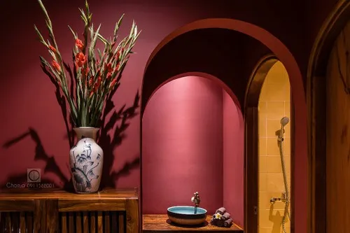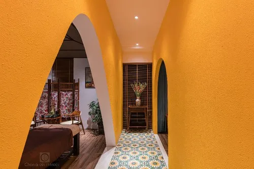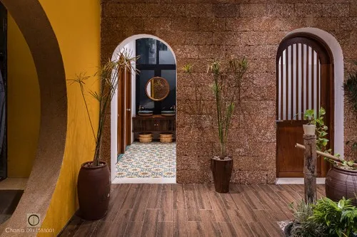 Cùng với việc vận dụng kiến trúc truyền thống được tái hiện bằng các hàng hiên từ sảnh đến hành lang chung. Lõi giếng trời trọng tâm ở giữa công trình với hồ nước bên dưới và các phòng chức năng bao quanh. Mỗi trục nhìn xuyên suốt định hình cho từng tầng kết hợp cùng các nhịp điệu cửa vòm đối xứng.