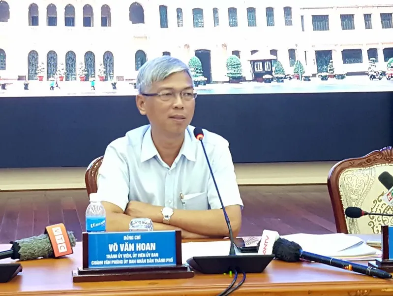 Chánh Văn phòng UBND TP Võ Văn Hoan trả lời báo chí. Ảnh: TÁ LÂM