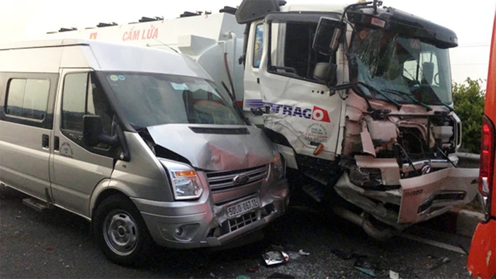 Vụ tai nạn liên hoàn trên cao tốc khiến bốn người bị thương. Ảnh: VECE