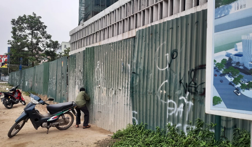 Cuối chiều 3-1, bảo vệ khóa cổng vào công trình trụ sở làm việc Sở Tài chính tỉnh Nghệ An. Ảnh: Đ.L