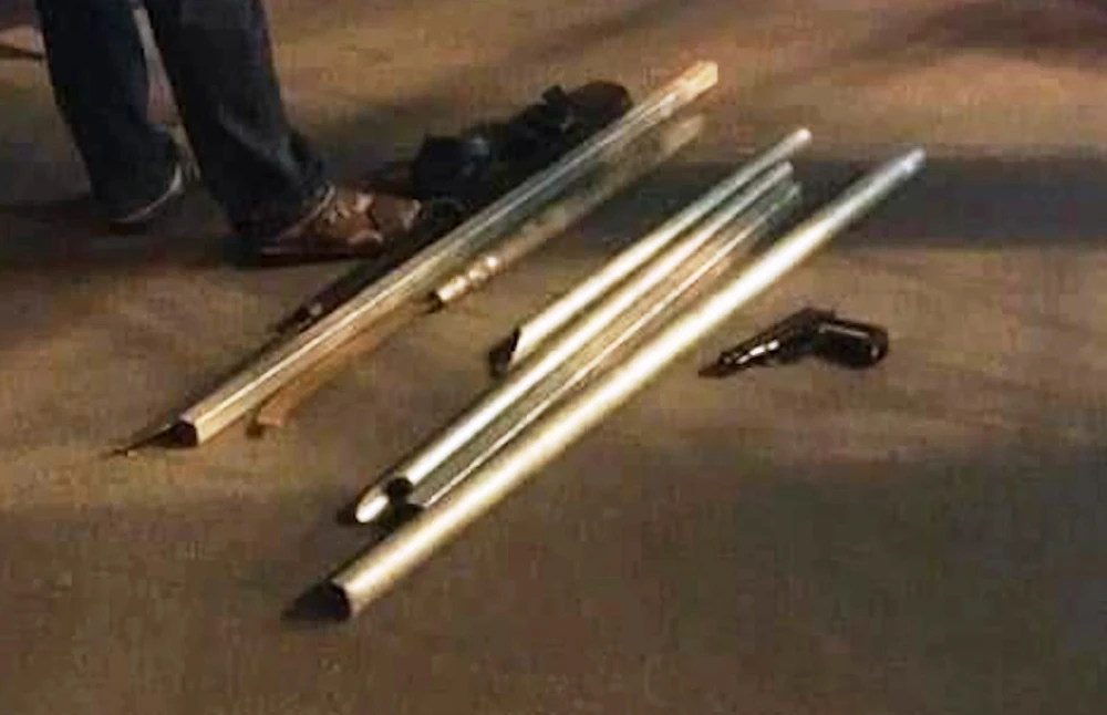 Hung khí thu được sau khi hai nhóm bỏ chạy, trong đó có súng bắn đạn bi.