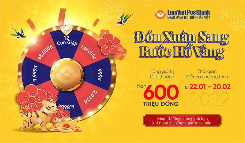 Theo đó, khách hàng tham gia quay thưởng tại vòng quay may mắn trên ứng dụng LienViet24h để có cơ hội trúng các giải thưởng vô cùng hấp dẫn. Ngoài việc nhận lời chúc mừng năm mới của LienVietPostBank, khách hàng còn có cơ hội nhận tiền mặt với giá trị hai triệu đồng. Tiền thưởng sẽ được chuyển trực tiếp vào tài khoản trên LienViet24h của khách hàng trong vòng 24 giờ kể từ thời điểm hệ thống ghi nhận kết quả trúng thưởng.