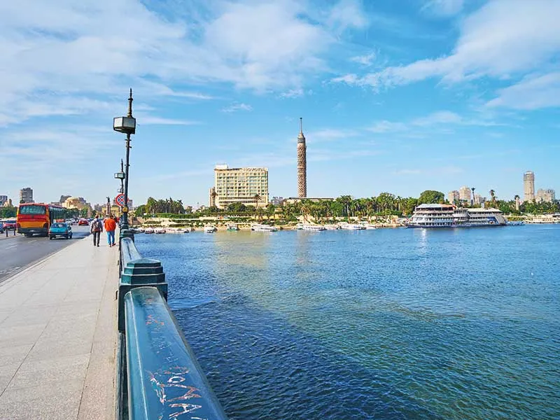 Bữa ăn sáng đầu tiên ở khách sạn Grand thật khó quên, không phải vì thức ăn mà là vì phút giây đầu tiên chạm mặt dòng Nile. Chỉ cách nhau một tấm kính trong suốt, tôi lặng nhìn dòng sông đục mờ và im lìm trong sương, từ bên này bờ có thể thấy được bên kia bờ. Trong tôi có chút hẫng hụt vì cứ ngỡ sông Nile phải vĩ đại và cuồn cuộn. Đã thế, những dãy khách sạn và cao ốc hiện đại san sát càng khiến Nile chẳng có vẻ gì đặc biệt so với các dòng sông mà tôi từng thấy. Dù vậy, tôi cố gắng nuôi dưỡng niềm tin rằng chỉ chiều nay hay ngày mai tôi sẽ tìm thấy nét độc đáo nào đó của con sông huyền thoại này.