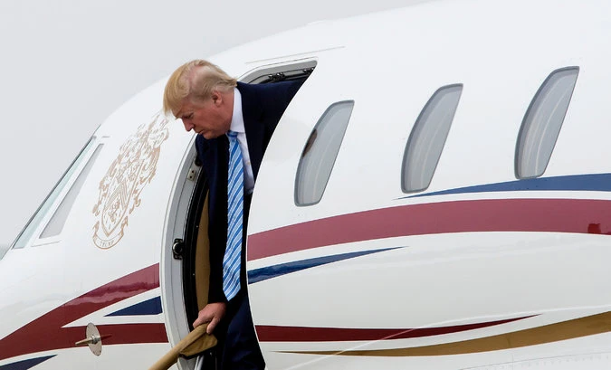 Donald Trump bước xuống từ chiếc phi cơ riêng Cessna. Ảnh: NY Times