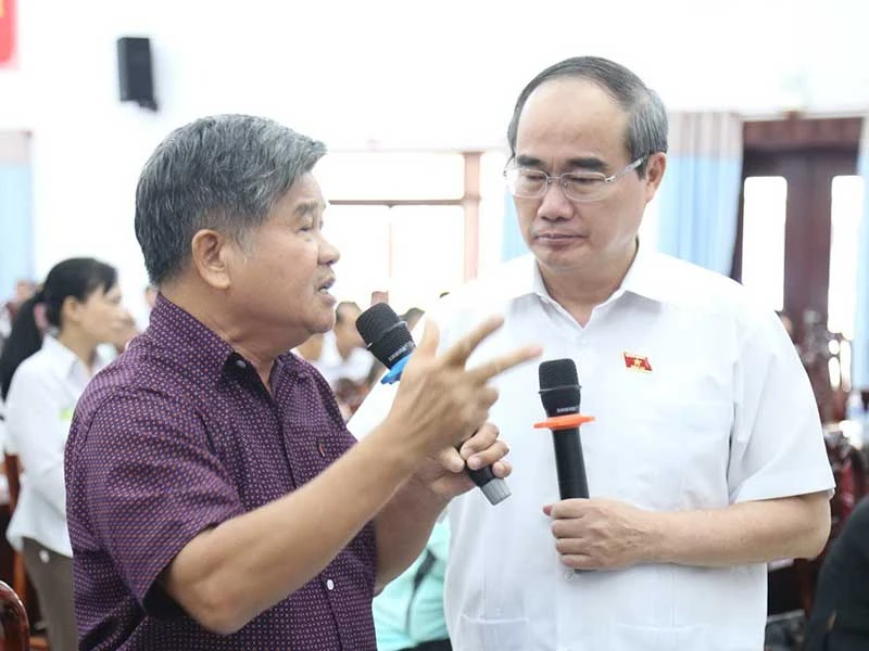 Sáng 14-5, Bí thư Thành ủy TP.HCM Nguyễn Thiện Nhân cùng các đại biểu Quốc hội Trần Hoàng Ngân, Giám đốc Học viện Cán bộ TP và Thiếu tướng Ngô Minh Châu, Phó Giám đốc Công an TP, đã có buổi tiếp xúc với cử tri huyện Bình Chánh.