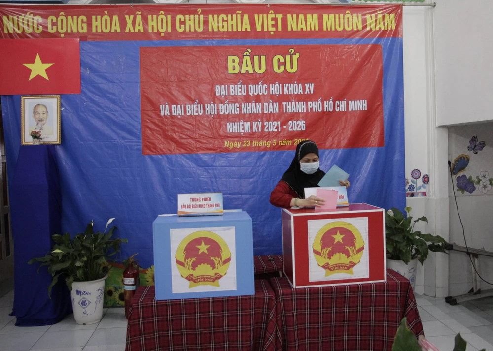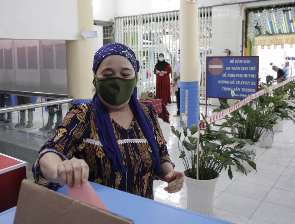 Trước khi vào khu vực bỏ phiếu, các cử tri được kiểm tra tra y tế, đọc lại thông tin các ứng cử viên và sau đó xếp hàng giãn cách, tiến hành bỏ phiếu bầu người có đủ đức, đủ tài.