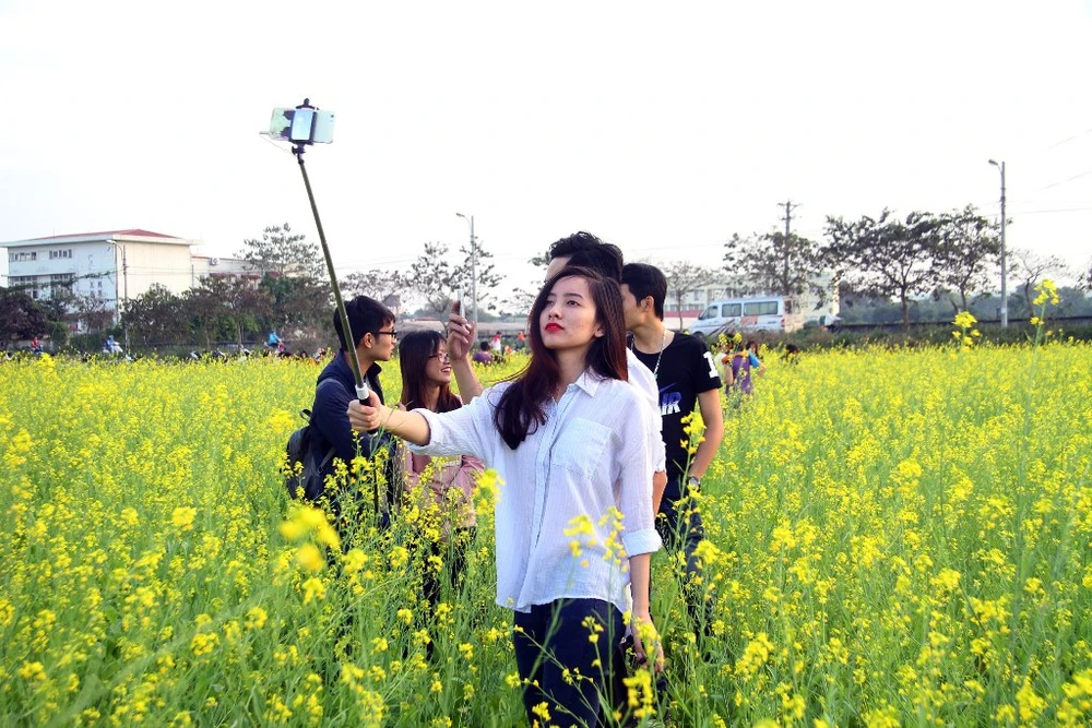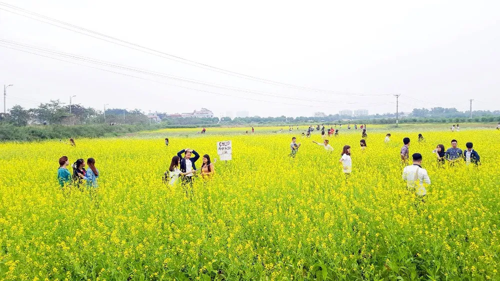 Mỗi năm vào dịp này, giới trẻ Hà Nội lại nô nức kéo nhau đi ngắm cánh đồng hoa cải rộng mênh mông ở Trâu Quỳ, Gia Lâm, Hà Nội.
