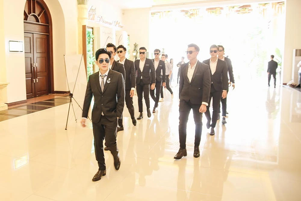 Quang Hà xuất hiện với dàn vệ sĩ gây ấn tượng.