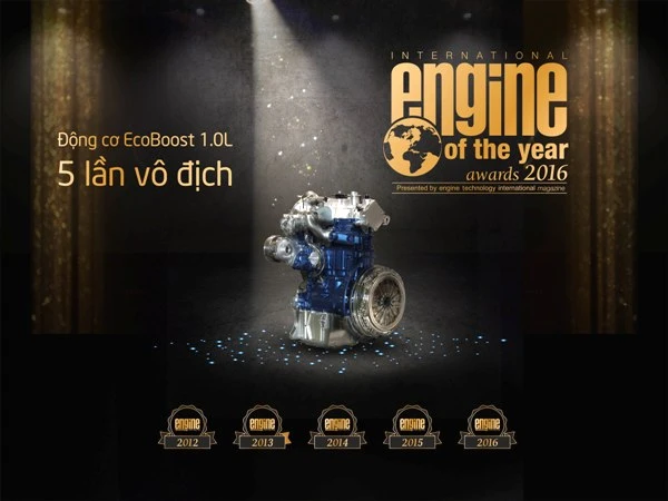 Động cơ 1.0L EcoBoost của Ford được vinh danh là “Động cơ dưới 1.0L tốt nhất” tại lễ trao giải thưởng Động cơ quốc tế 2016, lần thứ năm liên tiếp, tại Thượng Hải. Với giải thưởng này, EcoBoost một lần nữa khẳng định vị thế của mình trong phân khúc động cơ có dung tích nhỏ vượt qua sự cạnh tranh ngày càng tăng từ các nhà sản xuất động cơ trên phạm vi toàn cầu. Ford cũng dành chiến thắng lần thứ chín cho động cơ “thể thao” và “tiết kiệm nhiên liệu”, trước đó hãng cũng đã đạt kỷ lục với ba lần đạt giải và một lần nhận giải thưởng dành cho sản phẩm mới tốt nhất.