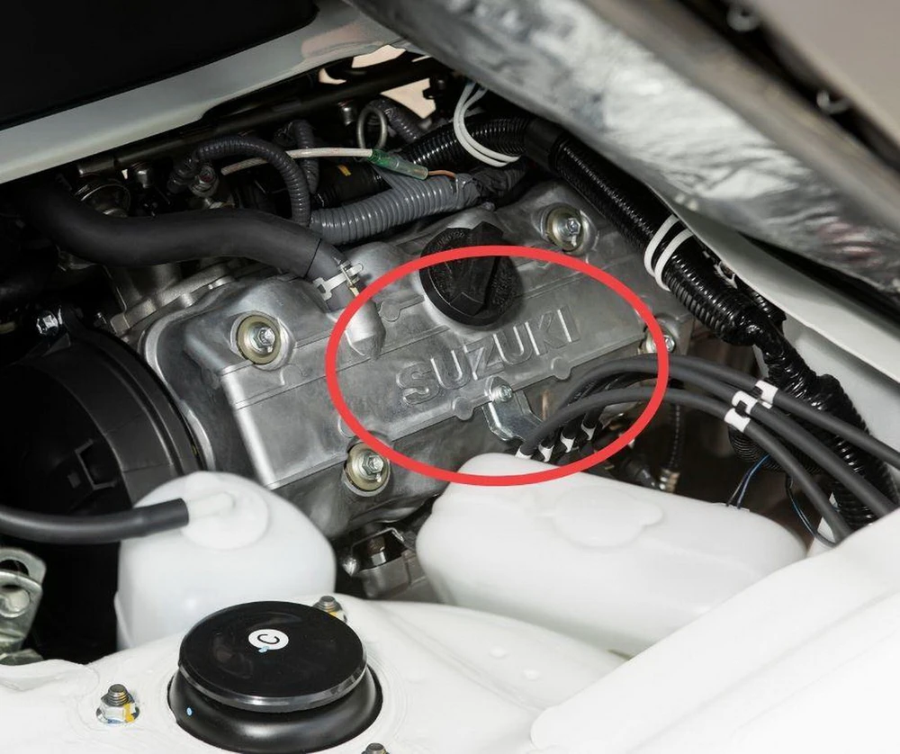 Động cơ F10 chính hãng Suzuki được nhận diện bằng dòng chữ “Suzuki” đúc nổi