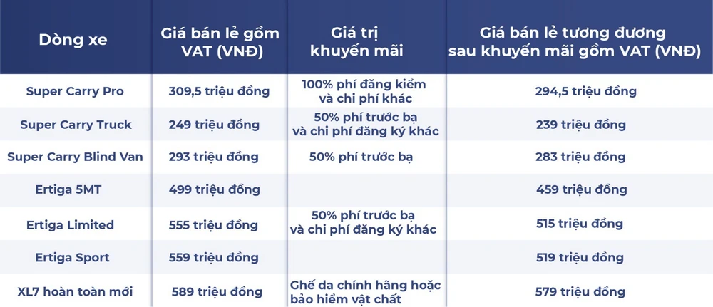 Đặc biệt, tháng 9 này, Suzuki cũng hỗ trợ phí trước bạ và chi phí khác cho các dòng xe thương mại, xe du lịch.