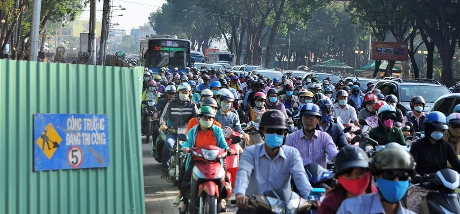 Nhưng do số lượng phương tiện quá đông, ùn ứ vẫn diễn ra. Ảnh: MP