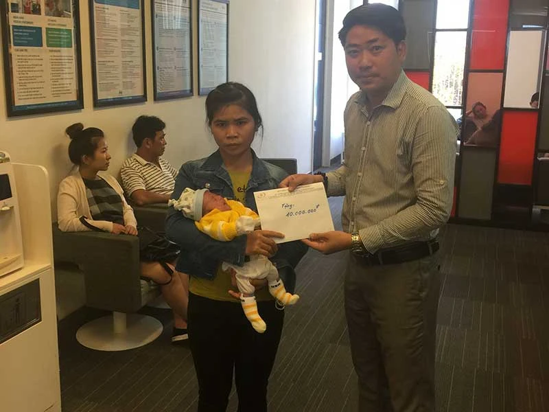 Quỹ Thiện Tâm (Tập đoàn Vingroup) đã đến thăm và trao cho gia đình 10 triệu đồng. Ảnh: VINGROUP