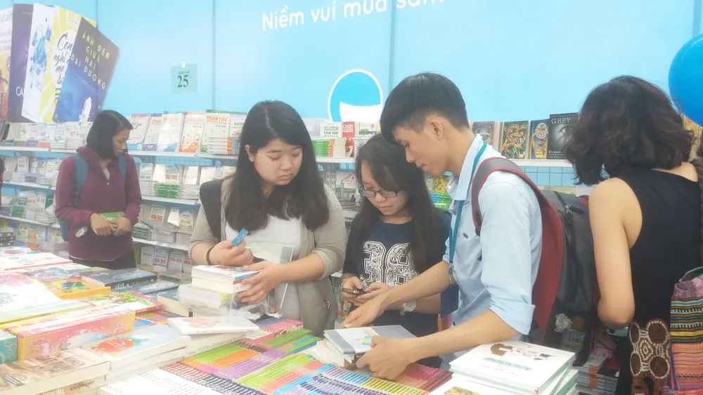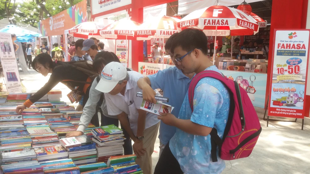 Rất nhiều đầu sách được trưng bày tại hội chợ sách năm nay khiến độc giả có thể dễ dàng tìm thấy cuốn sách mà mình muốn mua mà không cần phải mất nhiều thời gian. ẢNH: THANH TUYỀN