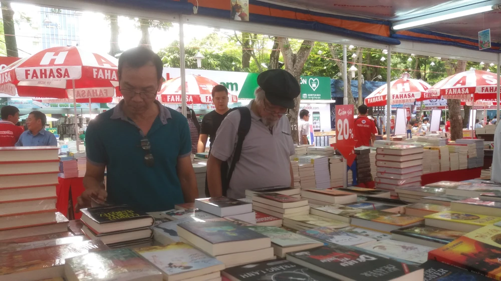 Gian hàng sách của nhà sách FAHASA với nhiều tác phẩm mới được nhiều độc giả lớn tuổi lựa chọn. ẢNH: THANH TUYỀN