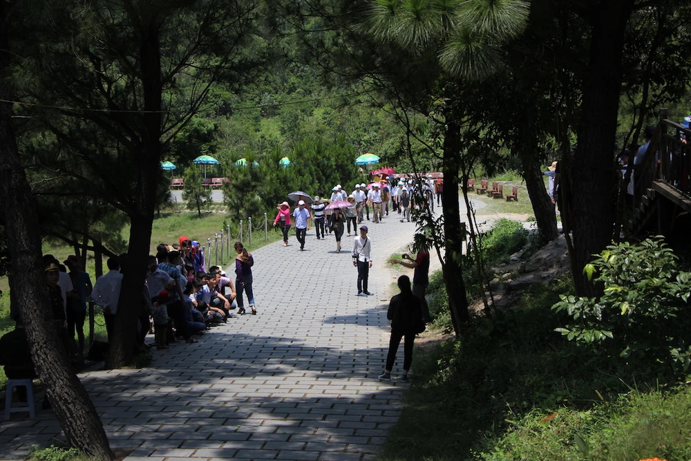 Trong những ngày nghỉ lễ, mỗi ngày có hàng ngàn người dân cả nước đến viếng mộ Đại tướng tại khu vực Vũng Chùa-Đảo Yến. Ảnh: LÊ PHI