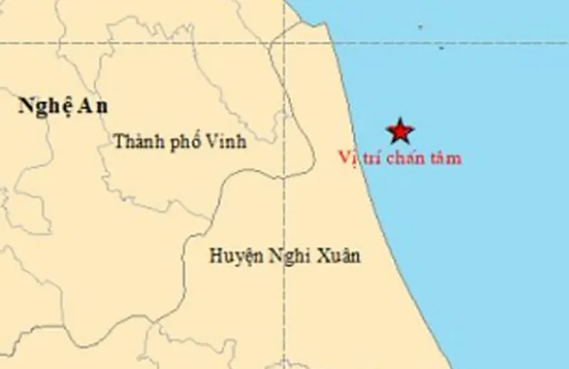 Vị trí tâm chấn trận động đất nằm ngoài khởi biển Hà Tĩnh, gần với vùng biển Nghệ An.