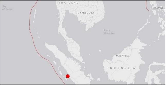 Trận động đất 6,2 độ Richter xảy ra ở đảo Sumatra vào ngày 2-6 (Ảnh: USGS)