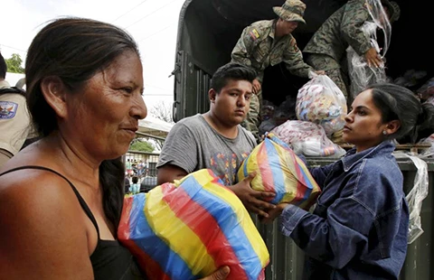 LHQ đã kêu gọi các nước cứu trợ cho Ecuador với mục tiêu trong vòng ba tuần quyên góp được 72,7 triệu USD giúp đỡ khẩn cấp cho 350.000 người gặp khó khăn trong 720.000 người cần giúp đỡ ở Ecuador (ảnh). LHQ cho biết trong 16,2 triệu dân Ecuador thì gần 50% đã cư trú ở sáu tỉnh bị ảnh hưởng động đất.