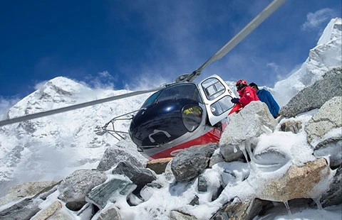 Trực thăng cứu hộ nỗ lực tiếp cận các nhà leo núi còn đang mắc kẹt trên dãy núi Everest. Nguồn: THE TELEGRAPH