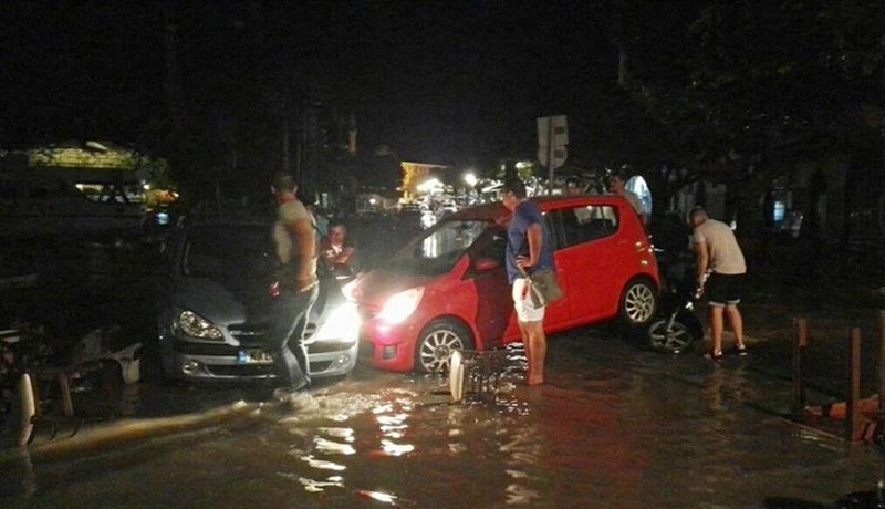 Đường phố trên đảo Kos ngập nước sau động đất. Ảnh: AP
