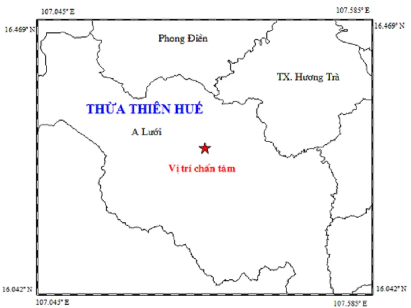 Trận động đất xảy ra lúc 22 giờ 58 phút đêm 17-11 tại khu vực huyện A Lưới (Thừa Thiên-Huế).