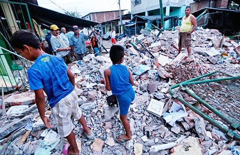 Động đất ở Ecuador đêm 16-4. Ảnh: AFP/GETTY IMAGES