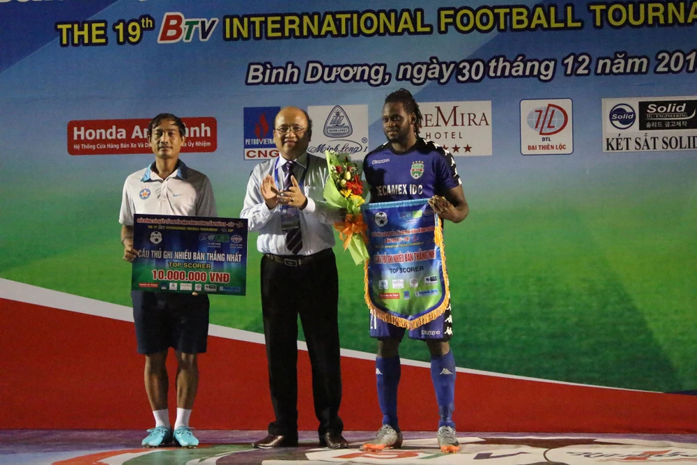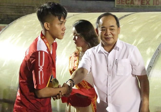Tân Chủ tịch VFF Lê Khánh Hải trao HCV cho đội vô địch HA Gia Lai.