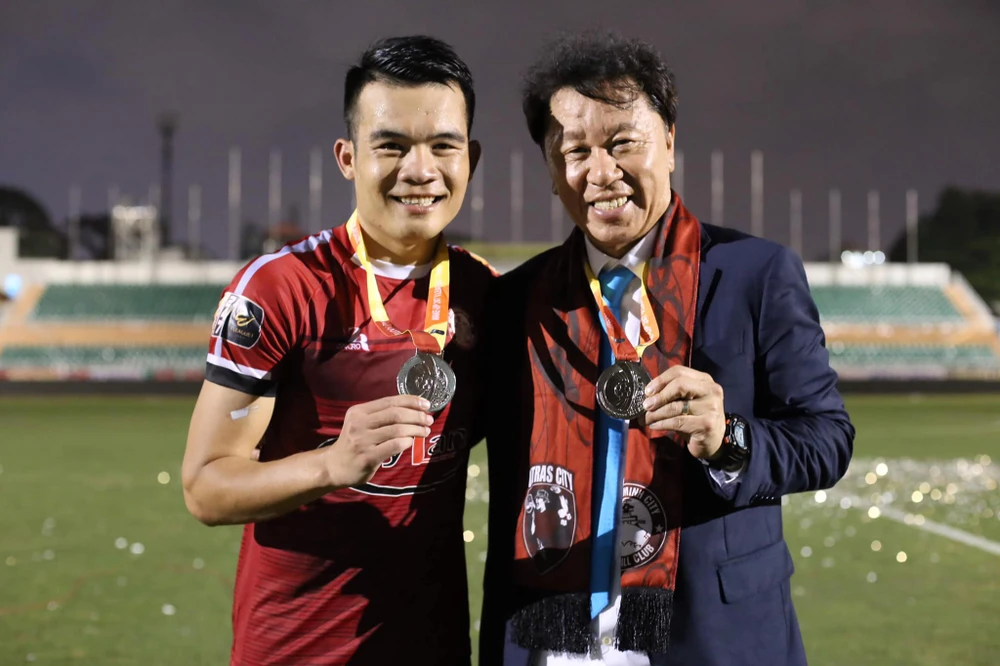 Thầy Chung bên cạnh tuyển thủ quốc gia Ngô Hoàng Thịnh. Ảnh: CLB TP.HCM